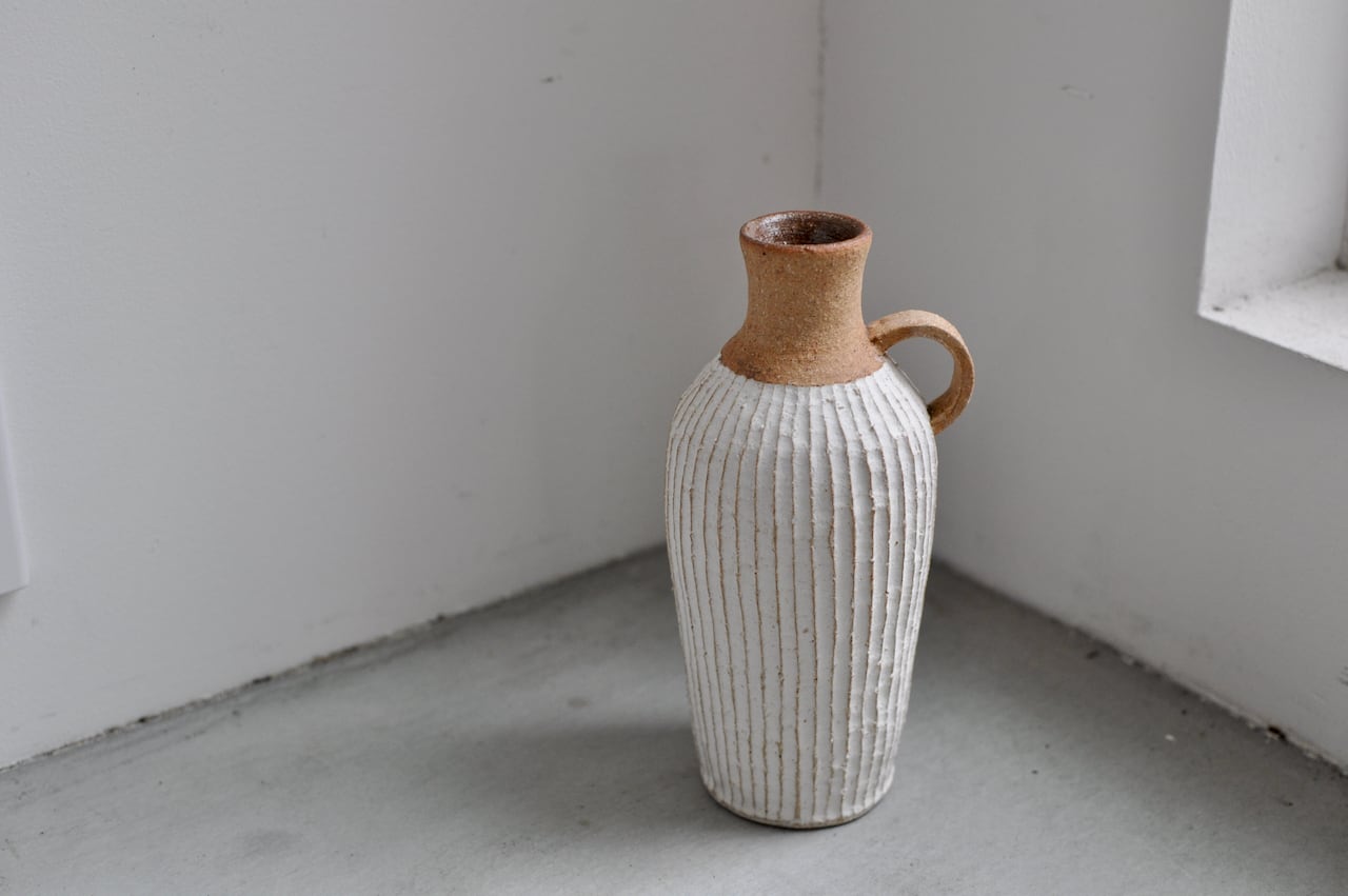 この土化粧シリーズは土の素朴さと白色の化粧、そこに「しのぎ」が加わって独特な雰囲気となりモダンな空間にも、和の空間にも様々なシーンにとても合わせやすいシリーズです